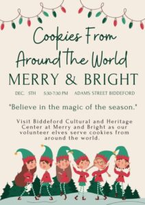 Please join us at Merry and Bright in downtown Biddeford for the Holiday Fest at Adams Street in Biddeford for “Cookies From Around the World.”