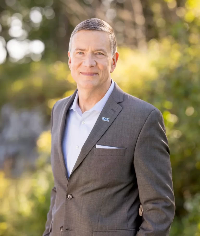 The University of New England’s sixth president, James D. Herbert, Ph.D., has led the university since July 2017. In that time, UNE has reorganized student support services to be more student-centric and expanded academic programming and facilities on both the Biddeford and Portland campuses. That growth includes new athletic facilities, a new home for Maine’s only medical school, a new business college, and several new undergraduate and graduate programs on campus and online.